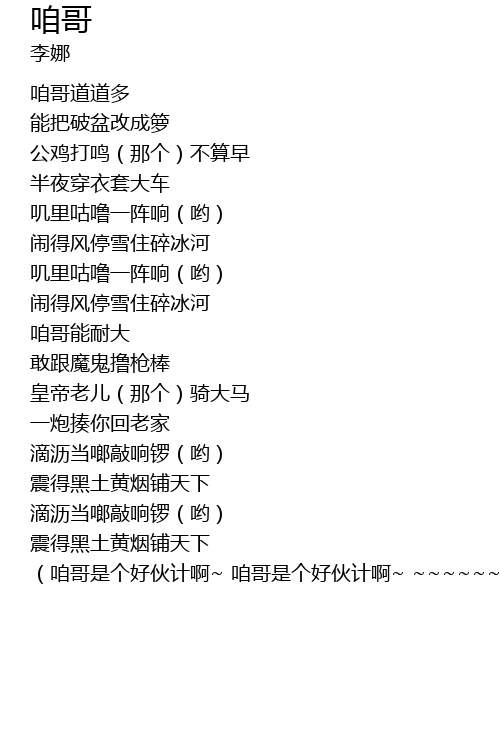 | [02:55.000] | (咱哥是个好伙计啊~ 咱哥是个好伙计啊~ ~~~~~~) |