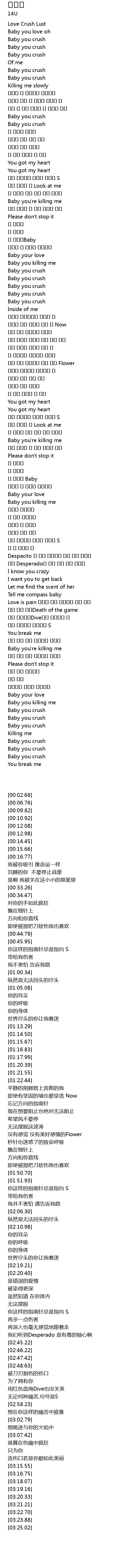 | [00:14.45] | Baby you crush |