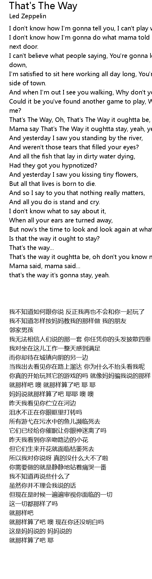 That's The Way, Oh, That's The Way it oughtta be, yeah, yeah, |