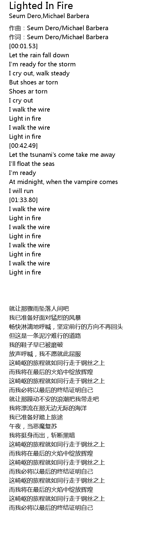 | [02:01.95] | 这崎岖的旅程就如同行走于钢丝之上 |