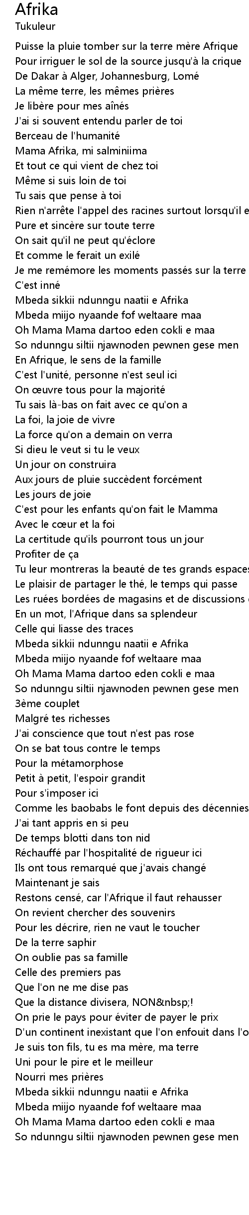 | Puisse la pluie tomber sur la terre me re Afrique | |