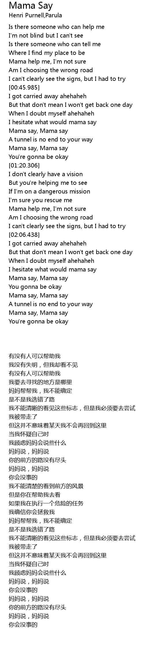 Mama say, Mama say |