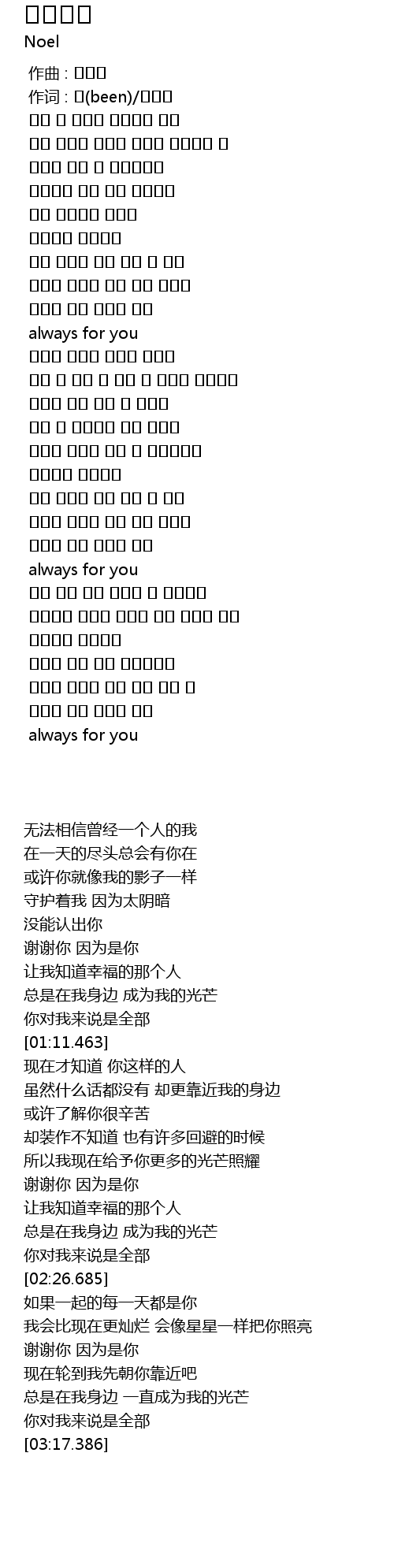 总是在我身边 成为我的光芒 |