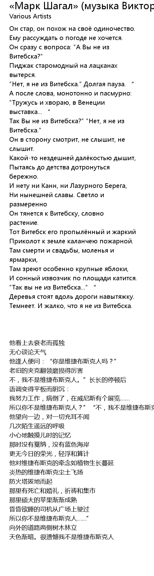 | [01:40.584] | Тот Витебск его пропылённый и жаркий |