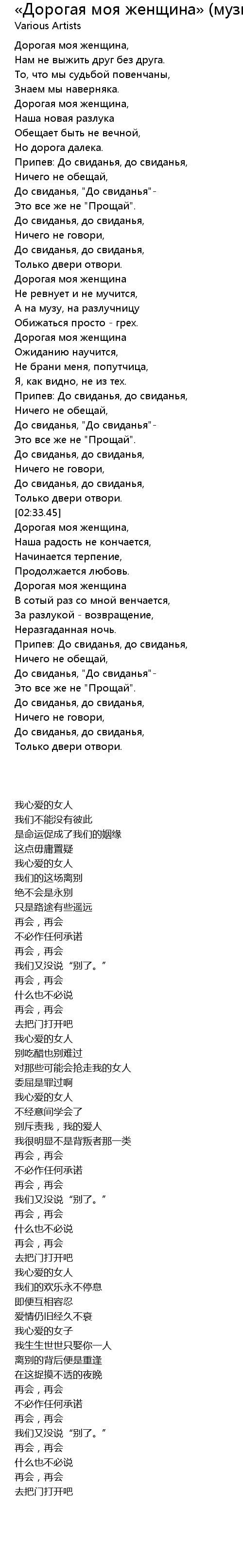 | [02:54.70] | Дорогая моя женщина |