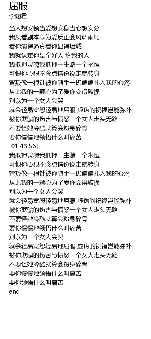 | [03:01.05] | 要你慢慢地领悟什么叫痛苦 |