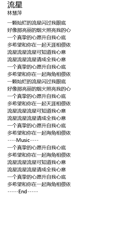 [02:20.39] liu xing liu xing liu xing ke zhi dao wo xin yi
