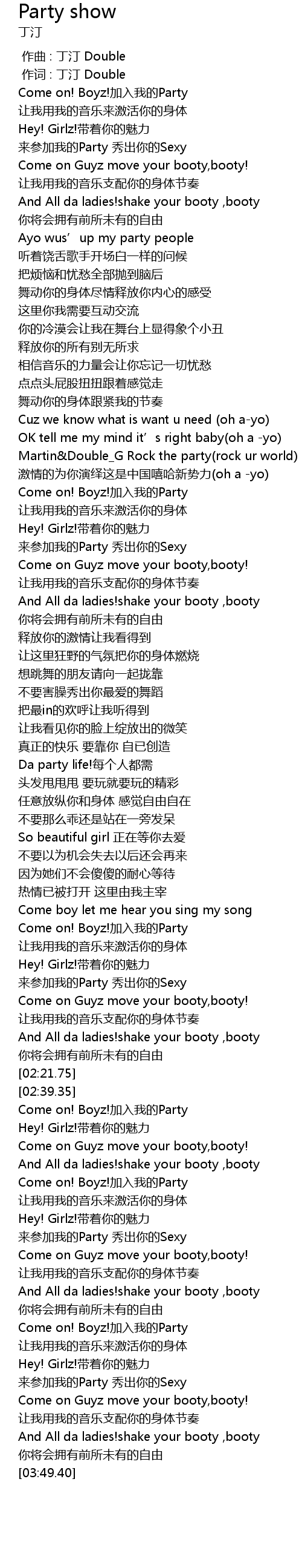 | [03:04.12] | Come on Guyz move your booty, booty! |
