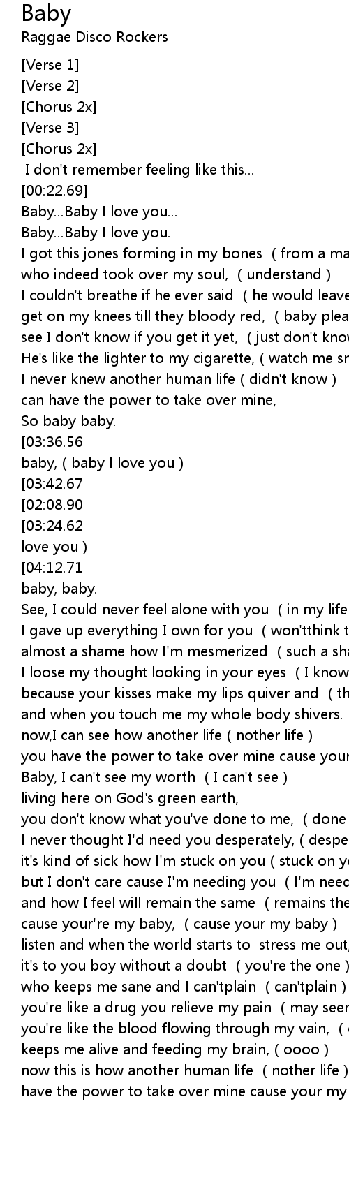 | [03:48.29][03:24.62][02:11.87][01:24.13] | baby, baby, baby, baby, baby, baby I love you |