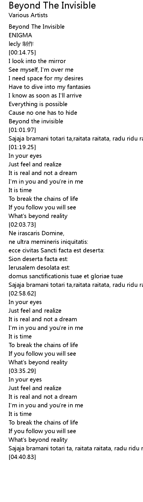 | [00:01.68] | Beyond The Invisible |