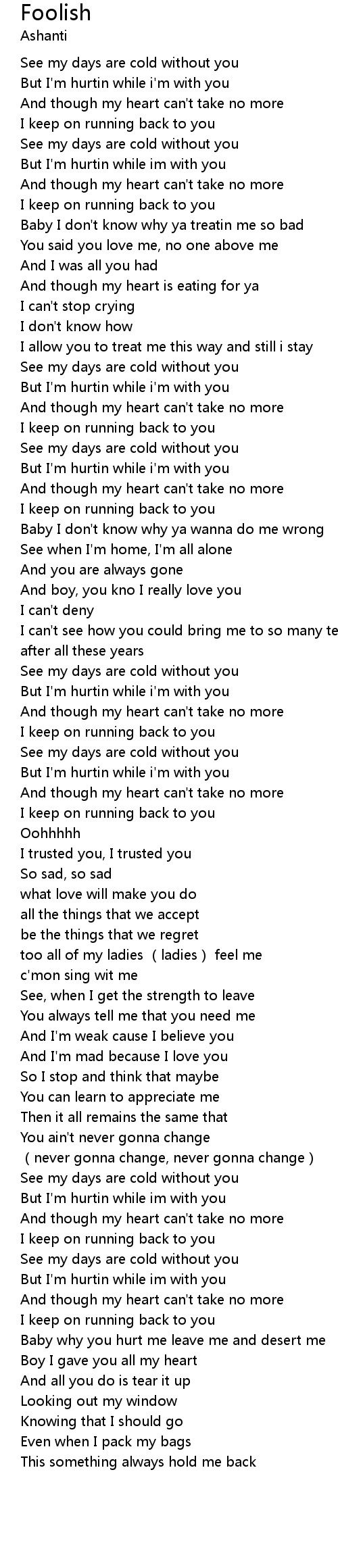 | [02:41.58] | See my days are cold without you |