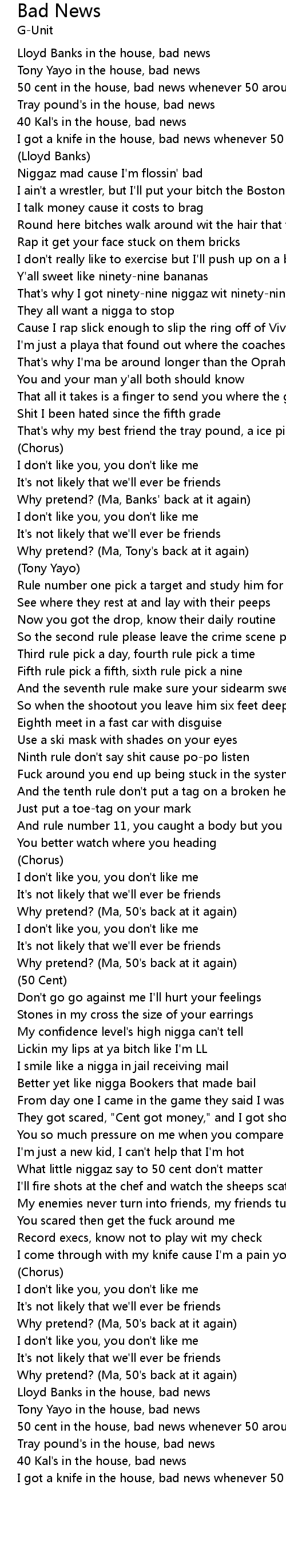 I got a knife in the house, bad news whenever 50 around it's bad news |