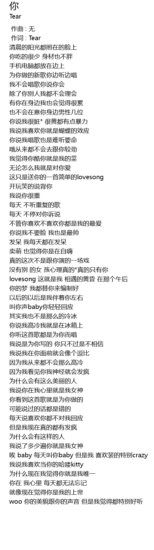 | [02:32.924] | ai baby mei tian jiao ni baby dan shi wo xi huan zhuang de te bie crazy |