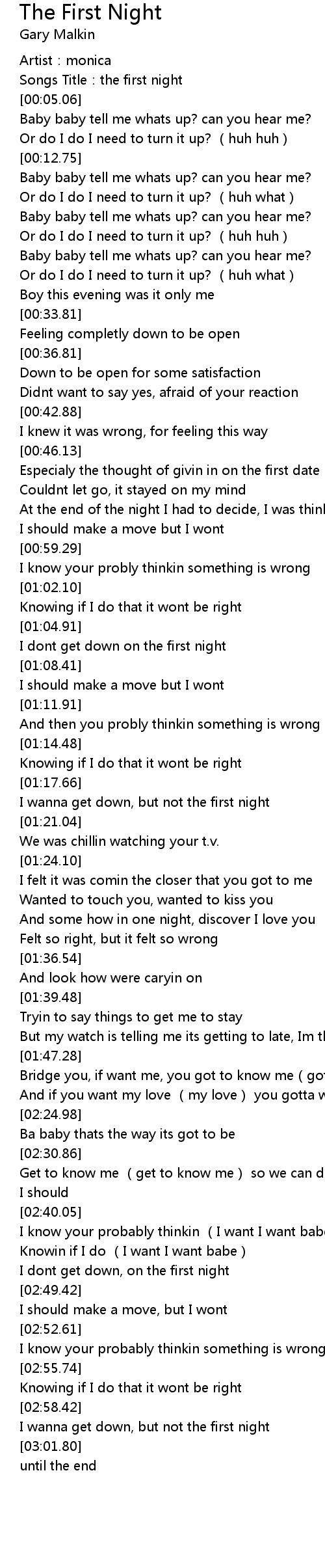 | [02:59.11] | I wanna get down, but not the first night |