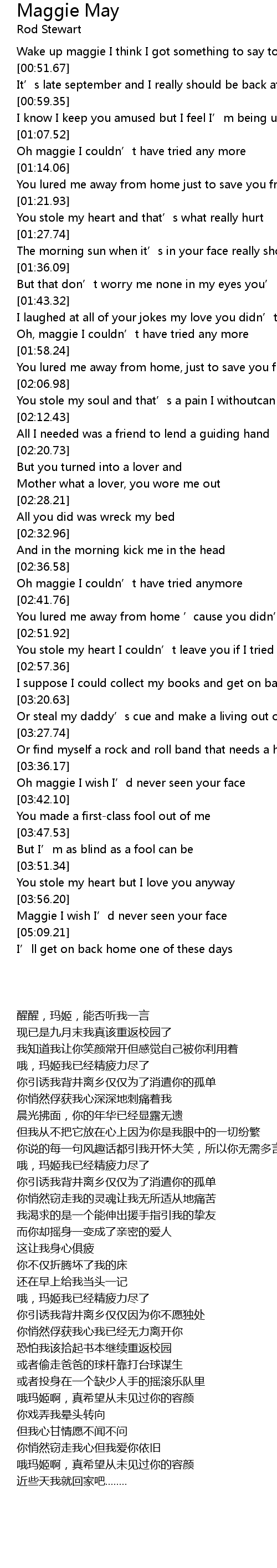 | [03:37.42] | Oh maggie I wish I' d never seen your face |