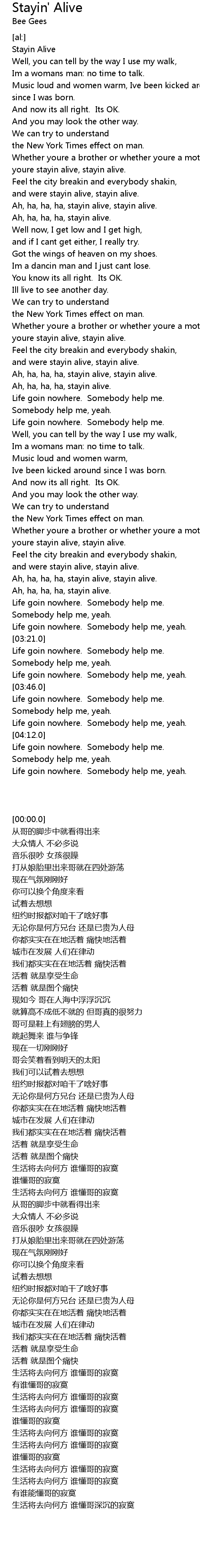 Ah, ha, ha, ha, stayin alive, stayin alive. |
