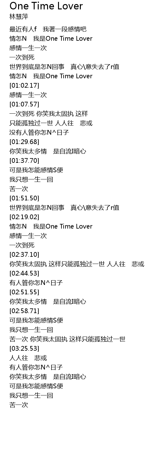 | [02:19.74] | 情怎N 我是One Time Lover |