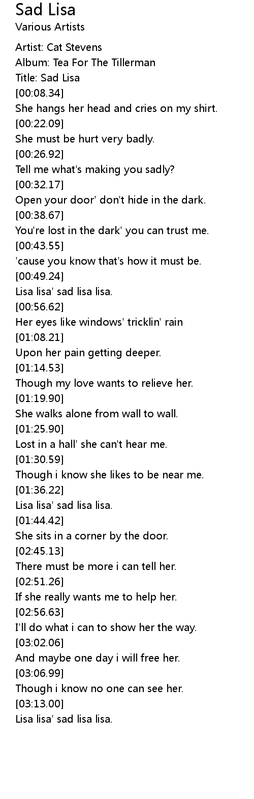 [03:16.43] Lisa lisa' sad lisa lisa.