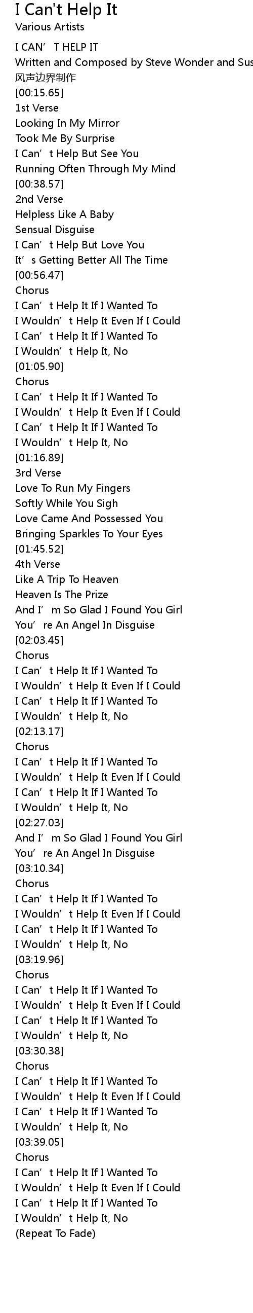 | [03:30.95] | I Can' t Help It If I Wanted To |