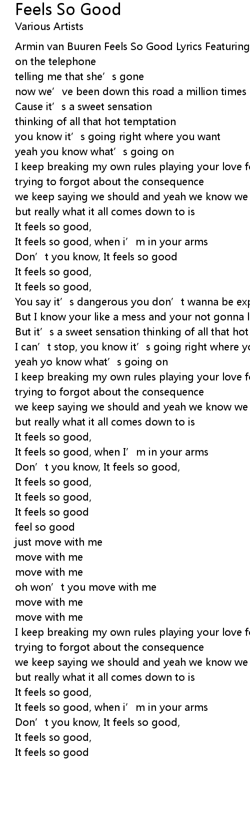 | [00:04.12] | Armin van Buuren Feels So Good Lyrics Featuring Nadia Ali Lyrics Your on the telephone |