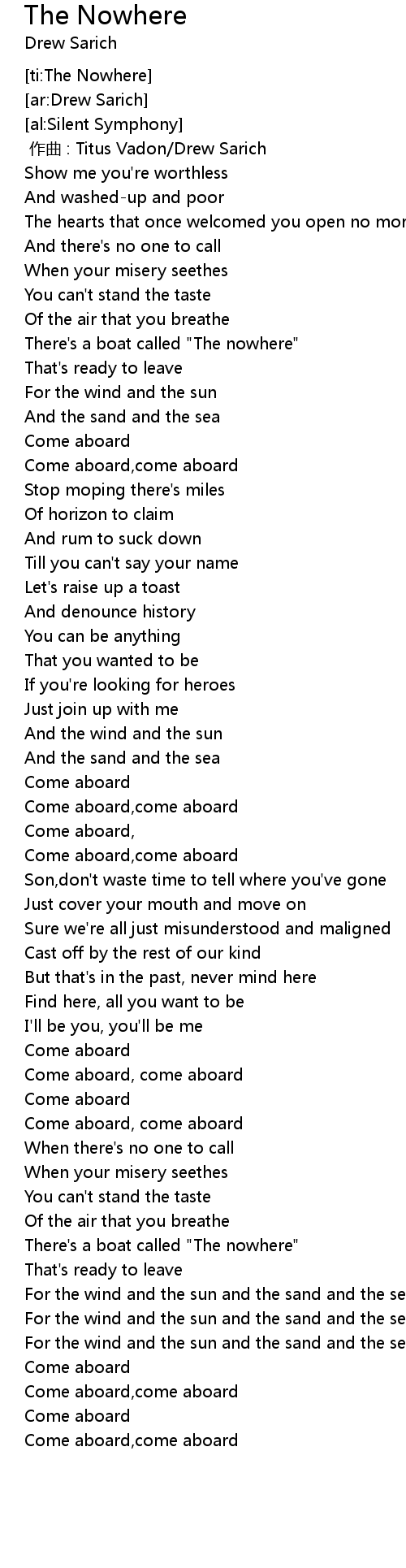 | [01:41.68] | Come aboard, come aboard |