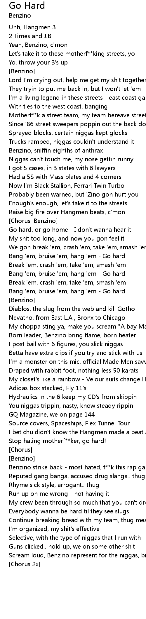 Bang 'em, bruise 'em, hang 'em - Go hard |