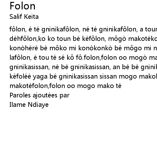 | fôlon, é té gninikafôlon, né té gninikafôlon, a toun bé kè tè déhfôlon,ko ko toun bé kèfôlon, môgò makotèkoumo douma bé môgo mi konòhèrè bé môko mi konòkonkò bé môgo mi naaaaafôlon, ko ko toun bi lafôlon, é tou té sé kô fô.folon,folon oo mogò makotèsissan, é bé gninikasissan, né bé gninikasissan, an bé bè gninikasissan,ko ko toun bé kéfoléé yaga bé gninikasissan sissan mogo makobalaflon,folonn oo môgò makotèfolon,folon oo mogo mako té | |