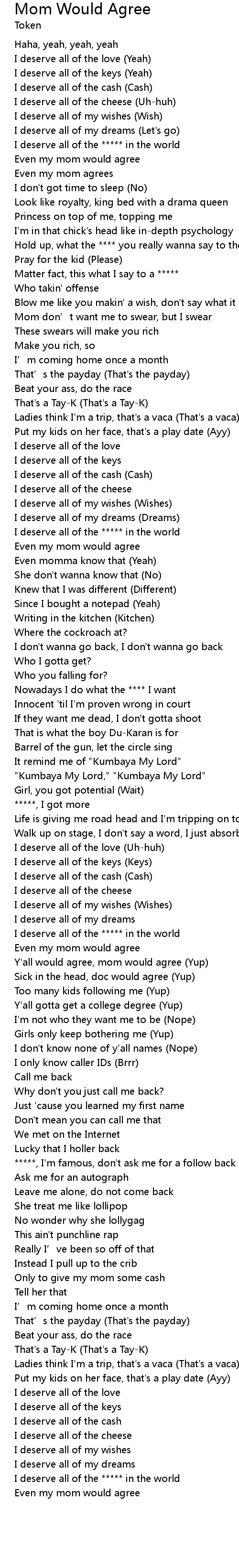 | [01:51.79] | Y'all would agree, mom would agree (Yup) |