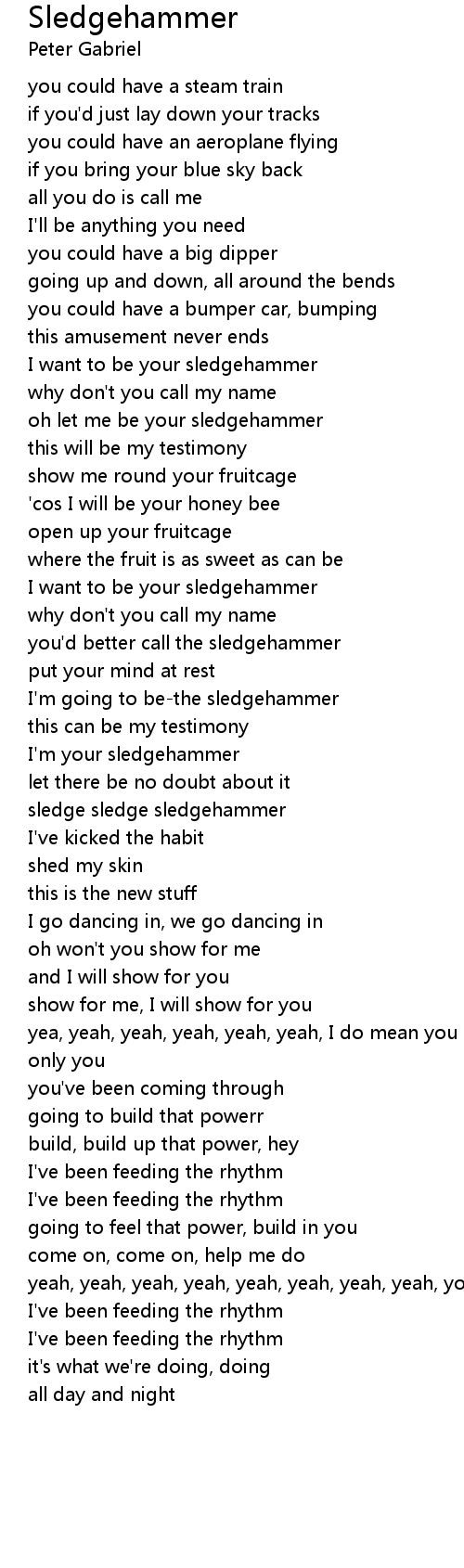 oh let me be your sledgehammer |