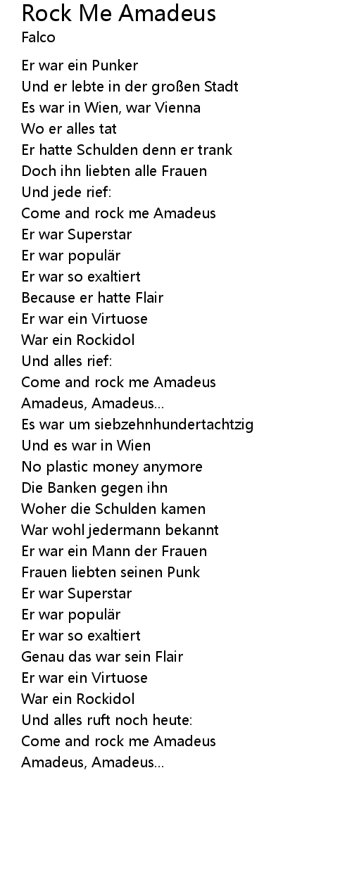 | Come and rock me Amadeus | |