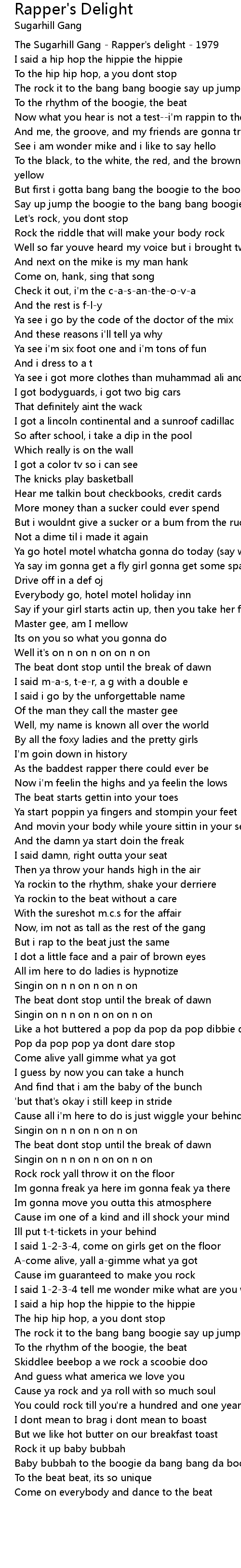 The hip hip hop, a you dont stop |
