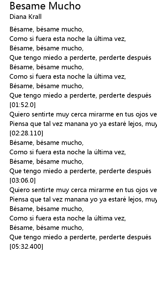 | [00:38.500] | Bésame, bésame mucho, |