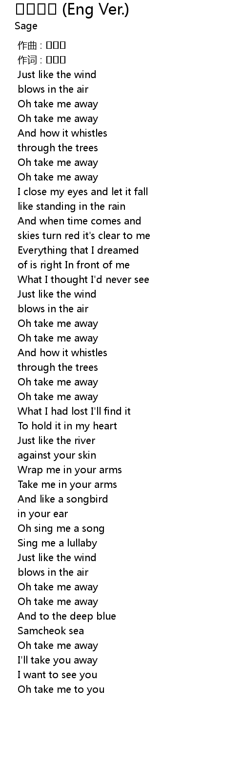 | 歌曲 | 데려가줘 (Eng Ver.) |