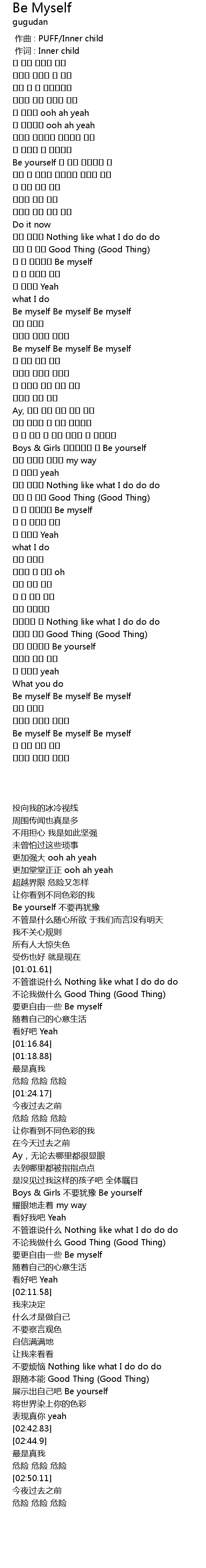 | [00:45.84] | Be yourself 더 이상 망설이지 마 |