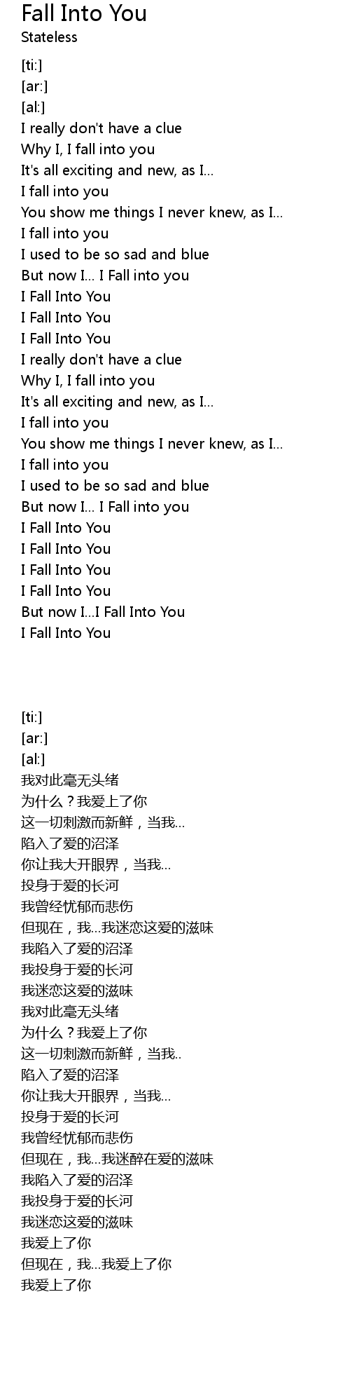 But now I... I Fall into you |