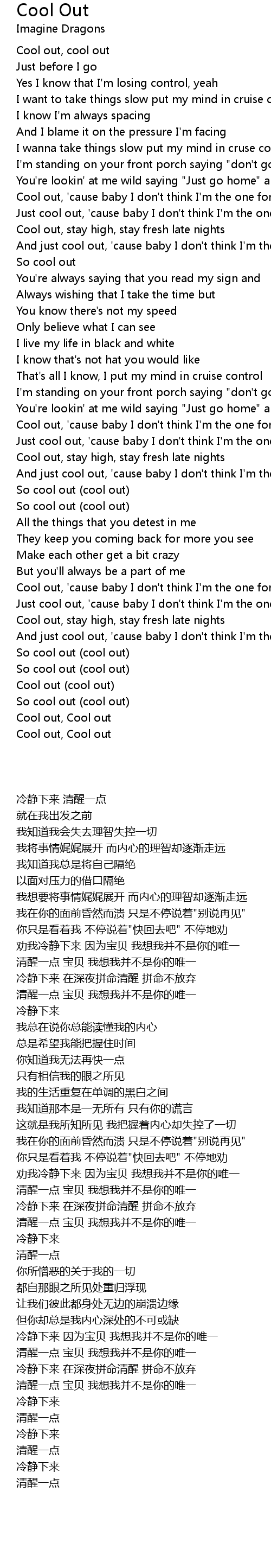 And just cool out, 'cause baby I don't think I'm the one for you |