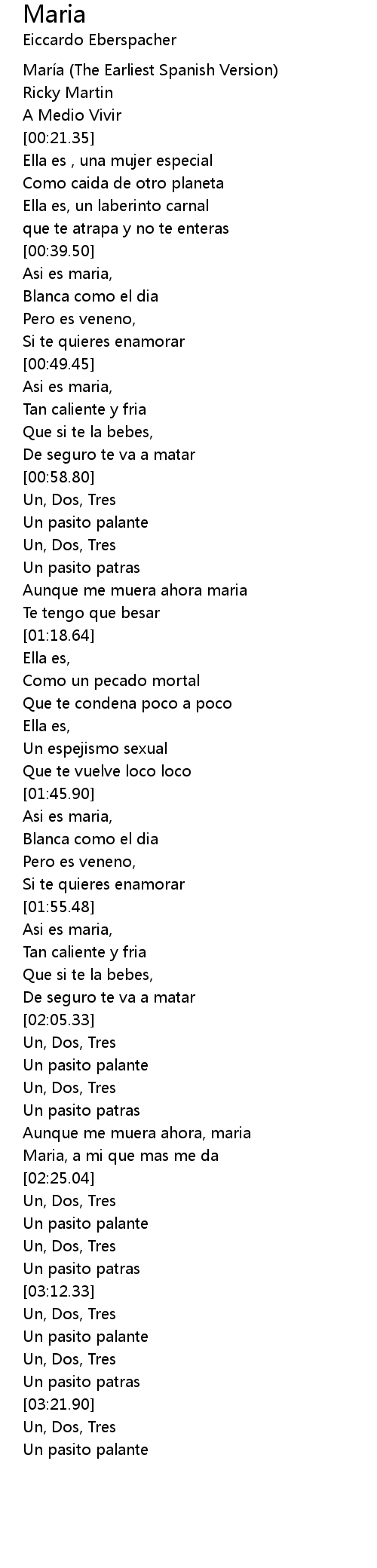 | [00:04.20] | María (The Earliest Spanish Version) |