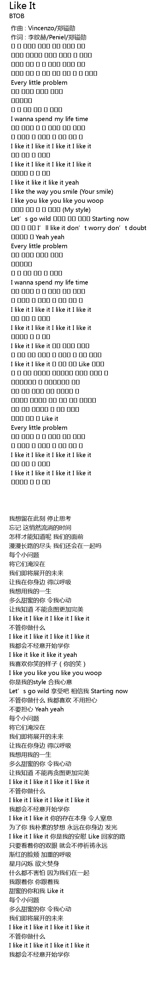 | [02:23.595] | I like it I like it 你是我的安慰 Like 回家的路 |
