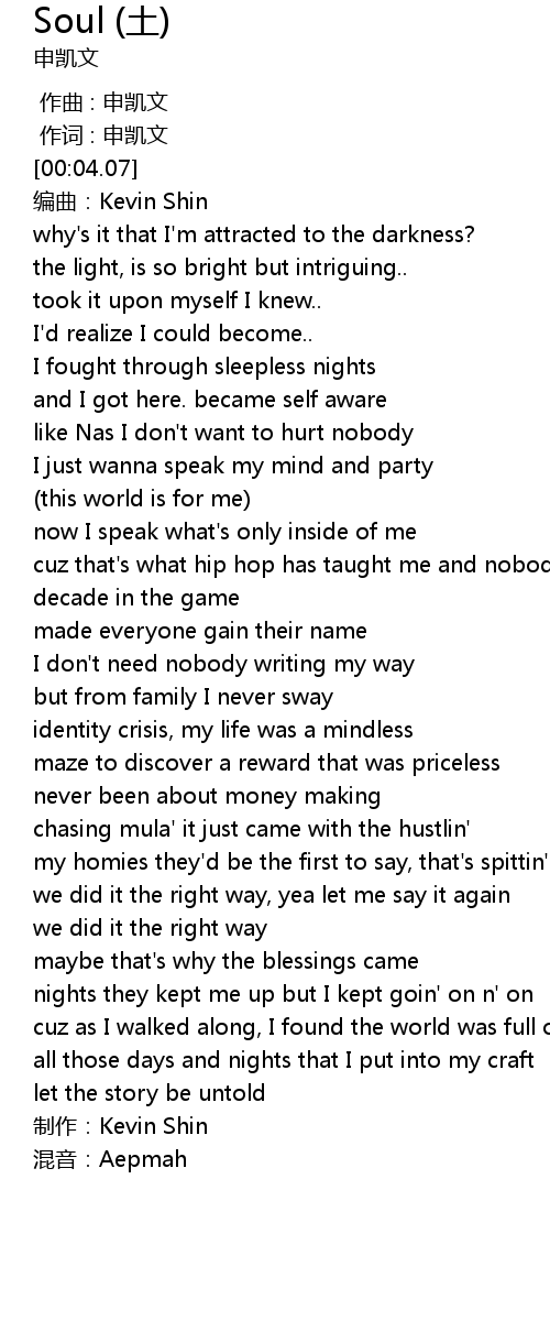 | [01:46.32] | zhi zuo: Kevin Shin |