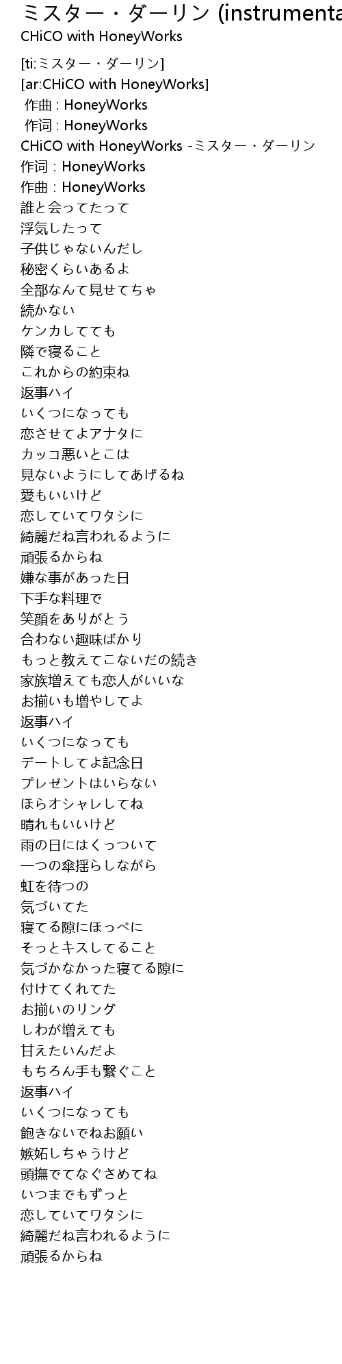 | [00:00.00] | CHiCO with HoneyWorks -ミスター・ダーリン |