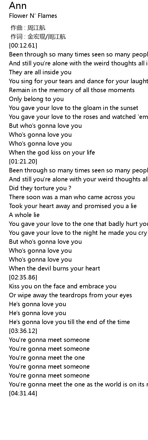 | [04:20.28] | You're gonna meet the one as the world is on its run |