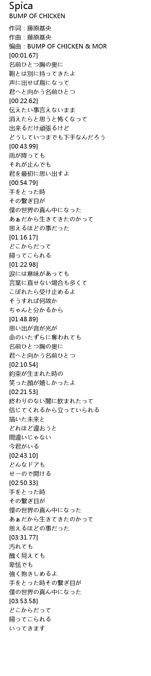 | [00:01.30] | 编曲:BUMP OF CHICKEN & MOR |
