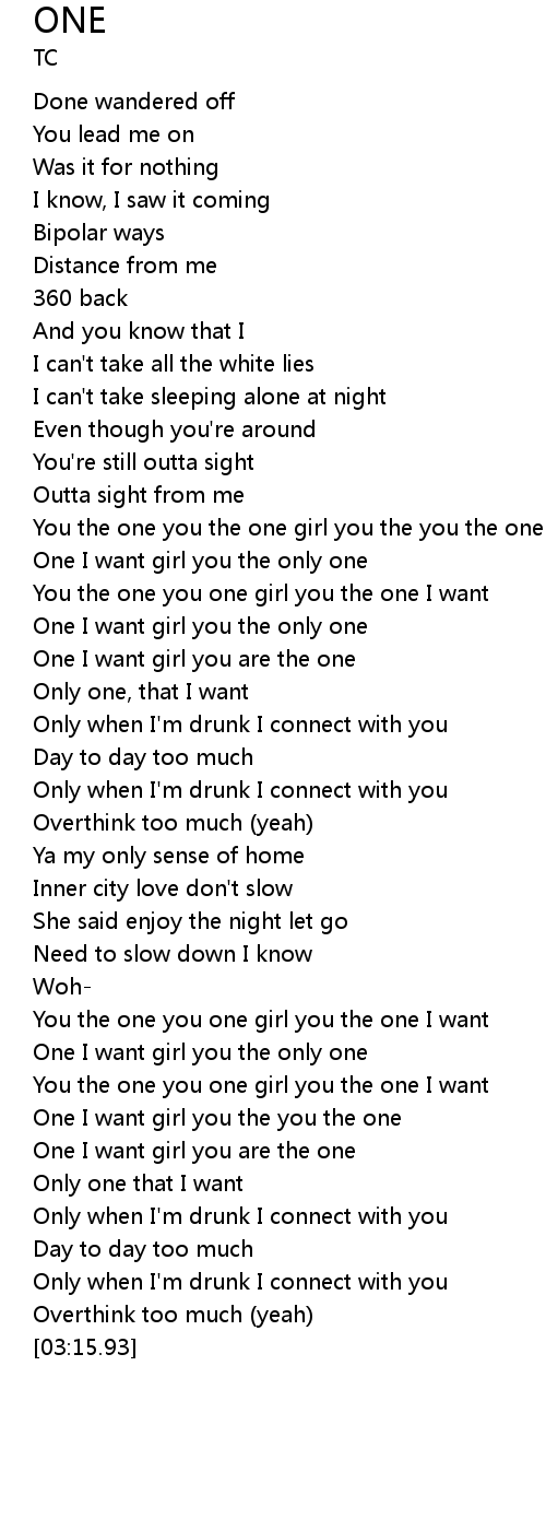 | [03:01.48] | Only when I'm drunk I connect with you |