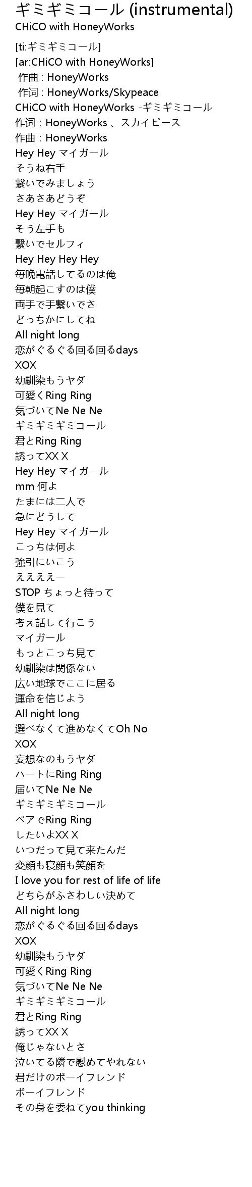 | [00:00.89] | CHiCO with HoneyWorks -ギミギミコール |
