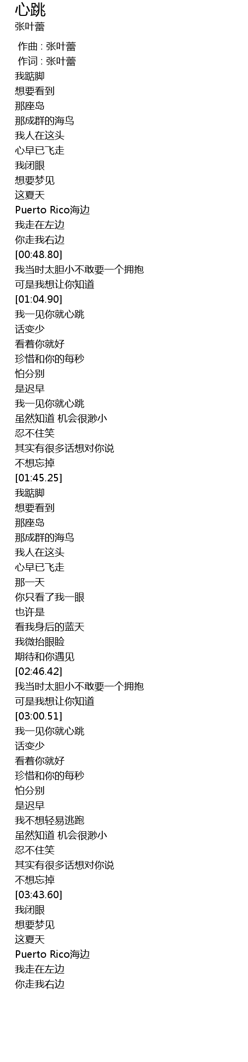 | [00:39.74] | Puerto Rico海边 |