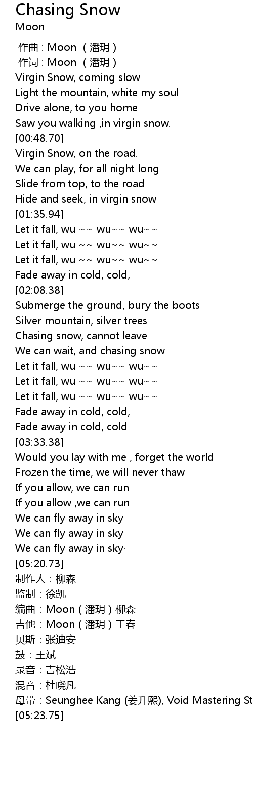 | [02:35.22] | Chasing snow, cannot leave |