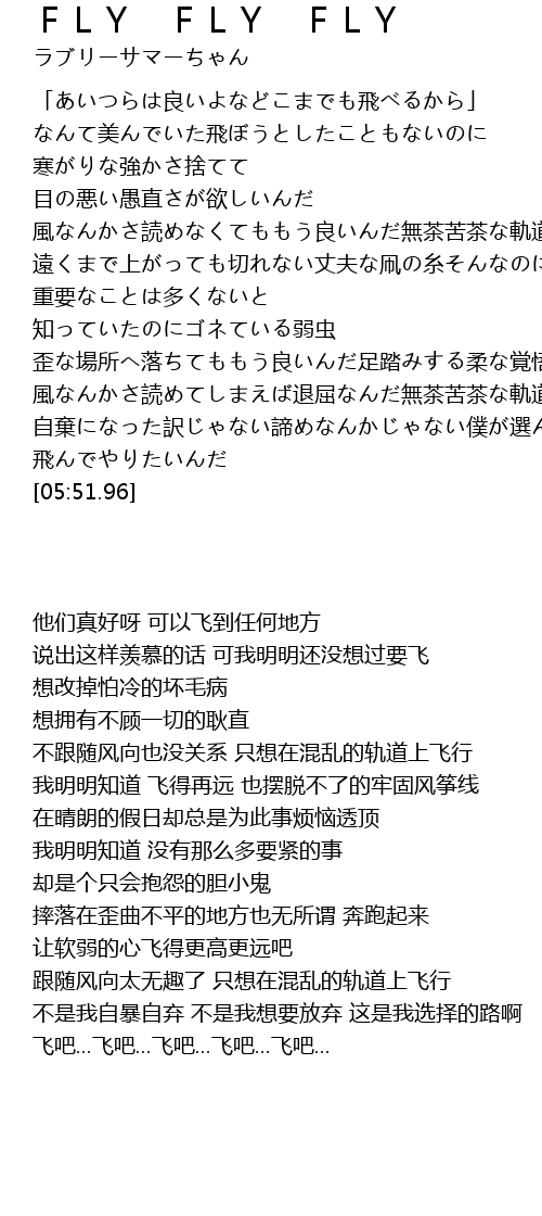 | [05:16.29] | 飞吧...飞吧...飞吧...飞吧...飞吧... |