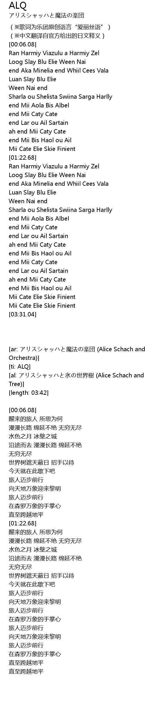 | [00:00.97] | (※歌词为乐团原创语言“爱丽丝语”) |