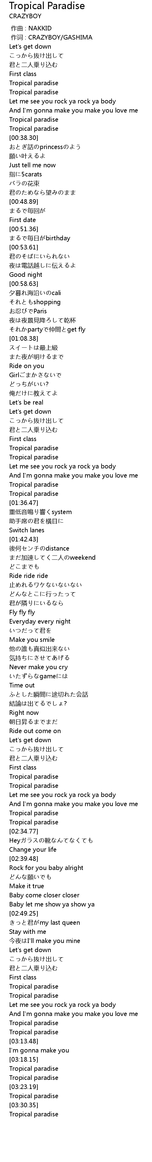 | [00:01.000] | 作词 : CRAZYBOY/GASHIMA |