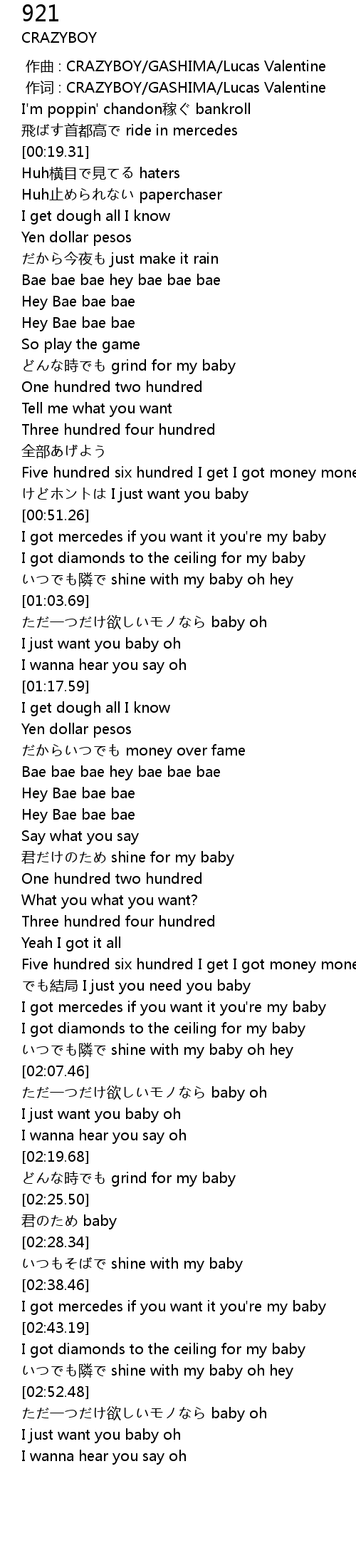 | [00:51.83] | I got mercedes if you want it you're my baby |